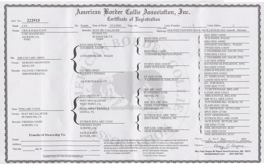 | Whoa! They could be sisters. Both are around 2½ months old in these shots. Actually they are related way back, 4 generations ago - they share two Great Great Grandfathers - Mac (ISDS 116944), and Moss (ISDS 103923). Darb's pedigree Lyn's pedigree |